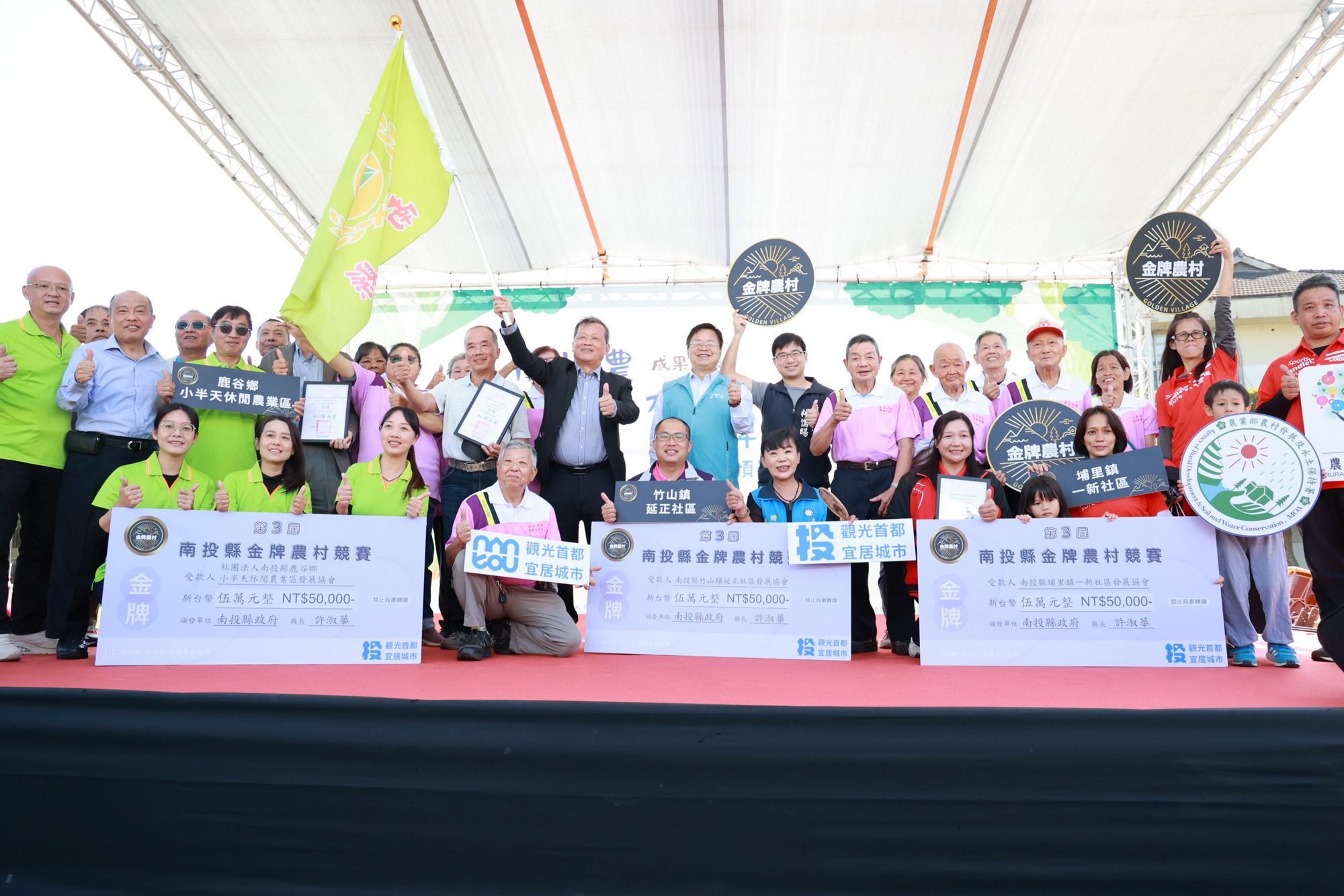 「金牌農村競賽」是農業部每三年辦理一次的全國性農村競賽,今年邁入第三屆,今年度南投轄區內共有89個農村社區參與南投縣內初賽,共計選出3金、3銀、3銅共9個績優社區,其中獲得金牌的3個社區分別為埔里鎮一新社區發展協會、鹿谷鄉小半天休閒農業區發展協會、竹山鎮延正社區發展協會,將代表南投縣參加全國競賽。